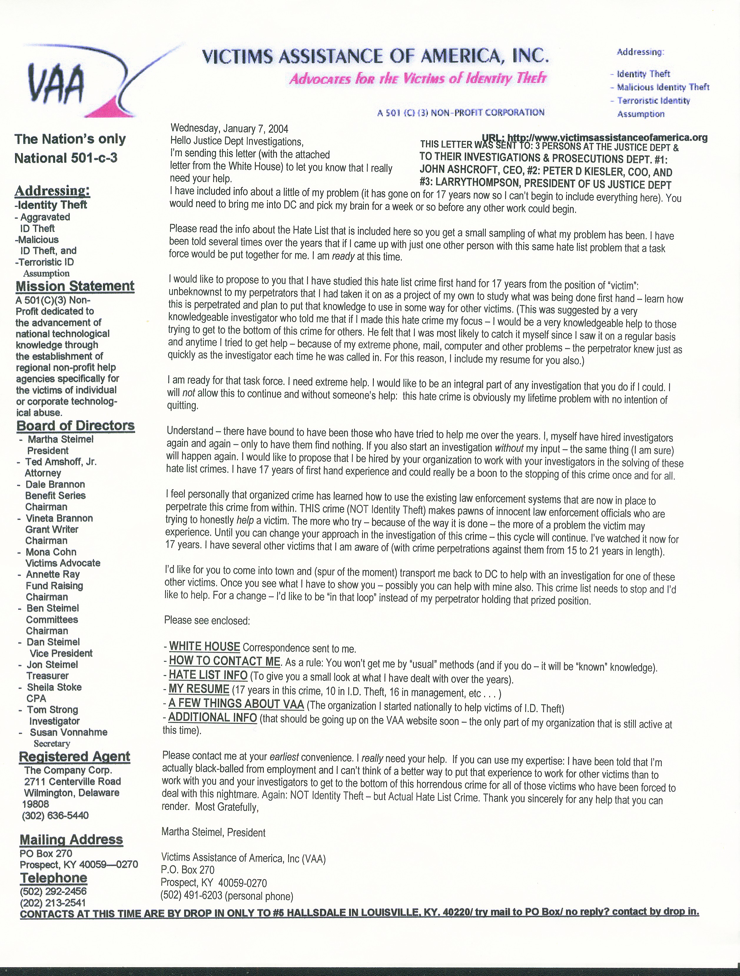 see WHITE HOUSE LETTER