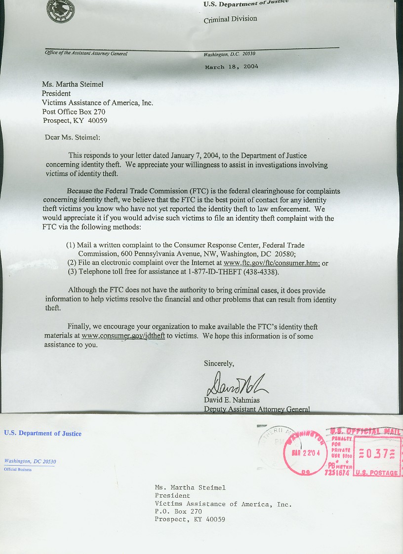 also states that the U.S. Justice Department protects, investigates